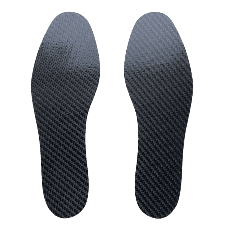 Carbon bestaat uit meerdere in elkaar geweven lagen carbon, ook wel koolstof genoemd, in combinatie met glasvezel en een compositiemateriaal. De volledige zool is dus van Carbon of glasvezel, zowel binnen als buitenkant. Door de fysieke eigenschappen van Carbon heeft de zool een extreem licht gewicht en een zeer hoge stijfheid, en kracht. Je kunt de carbonzool prima bewerken door deze met een dunne mes te snijden. Daarnaast is het materiaal goed op te schuren met een schuurmachine. Na verwarmen met een föhn kun je zool licht vervormen en hij is te vervormen met een vacuthermmachine.